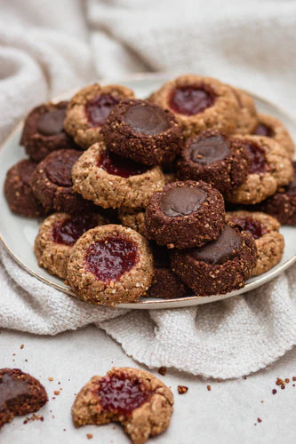 For me, angel eyes are a must at Christmas time and cannot be missing from the cookie plate! Our recipe with jam or chocolate filling is, as always, vegan, gluten-free and contains no refined sugar and you should definitely try it!