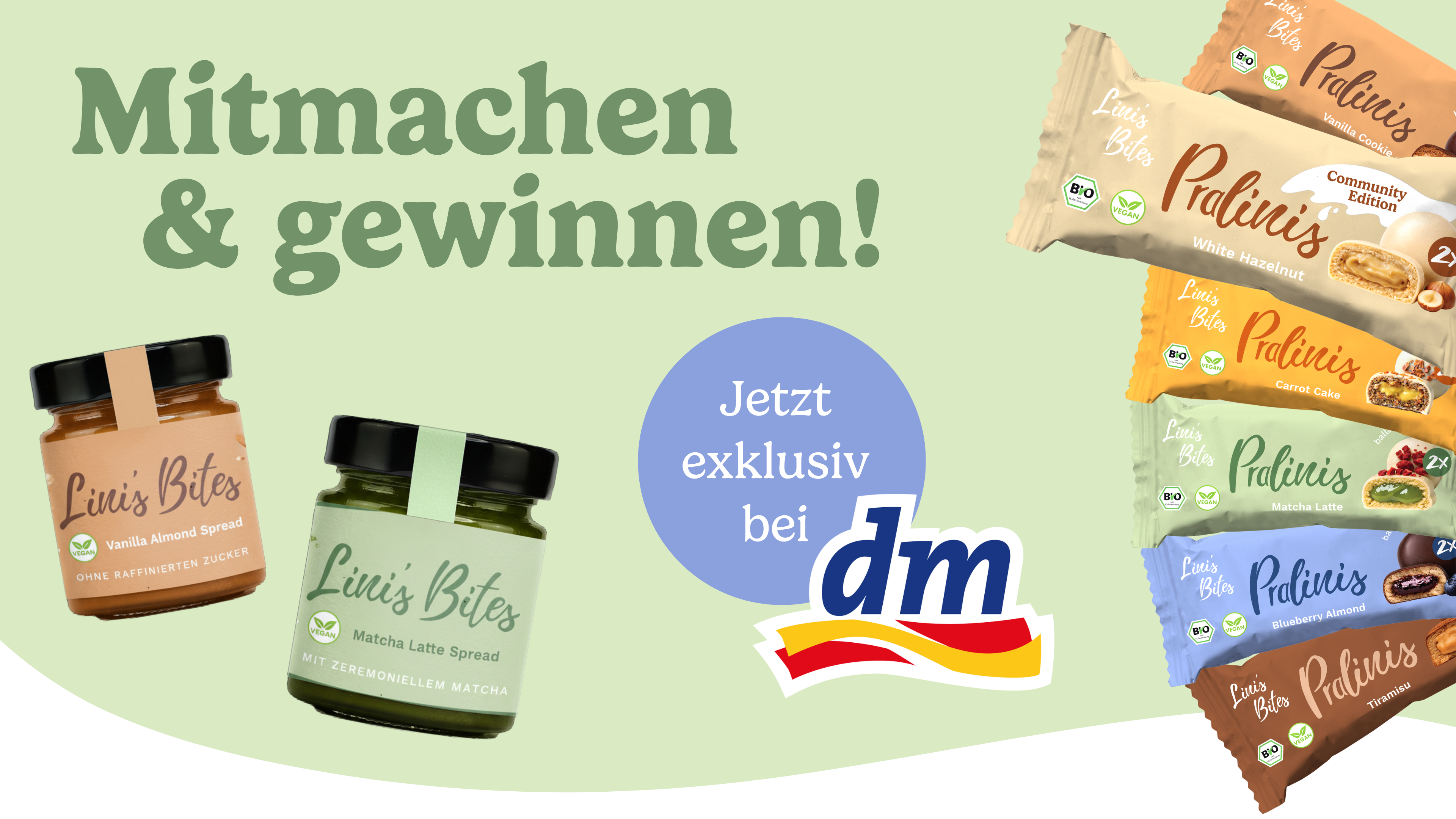 Das Gewinnspiel wird von Lini’s Bites veranstaltet. Es steht in keiner Verbindung zu dm, Instagram oder Facebook und wird in keiner Weise von diesen Unternehmen gesponsert, unterstützt oder organisiert.